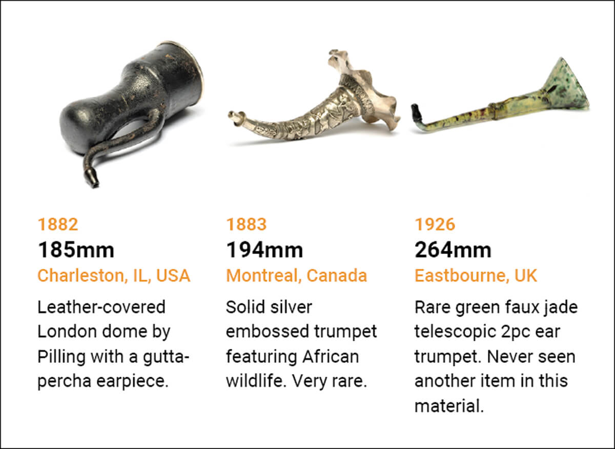 If you think you know a thing or two about ear trumpets, I’d bet Michael Briggs knows more! In this fascinating article, he tells the history of the ear trumpet, as well as sharing some wonderful pictures from his Guiness World Record collection.