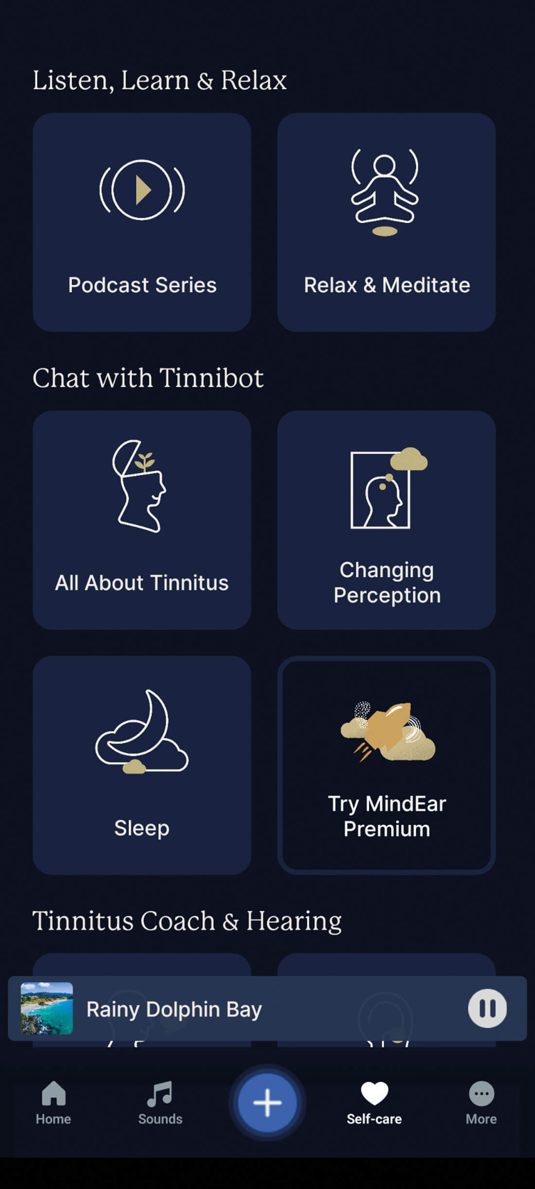 MindEar uses several techniques to help train the user to ‘tune out’ tinnitus sound.