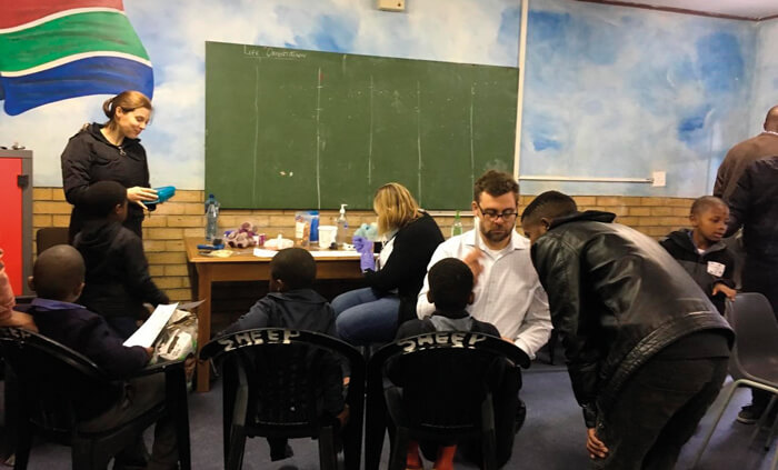 Screening requires flexibility and adaptability to new environments. Jessica McGuire, ENT Surgeon (University of Cape Town, Red Cross War Memorial Children’s Hospital) and Doug Hildrew, Neurotologist (Yale University), conduct onsite assessment of children undergoing hearing screening. Photo courtesy of J Zachary Porterfield.