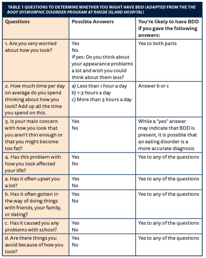 “Epidemiology data show that BDD affects approximately 1% of the US population, both male and female, the majority of whom are adolescents.”