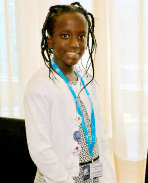 ‘My name is Elaine. I am 10 years old. I bring you greetings from Uganda. I wear cochlear implants. Without them, I can’t hear you. I am in fourth grade. I like math, science and reading. When I grow up, I want to be a robotic engineer to help many deaf children learn to talk.’