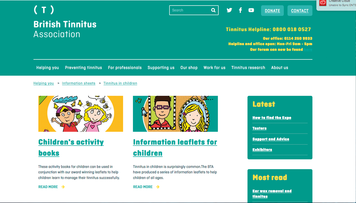 This is another section that is worth a look if you are seeking resources for children with tinnitus. It contains separate tinnitus guides for children, parents and teachers. There are also kid-friendly resources available, including printable activity books.