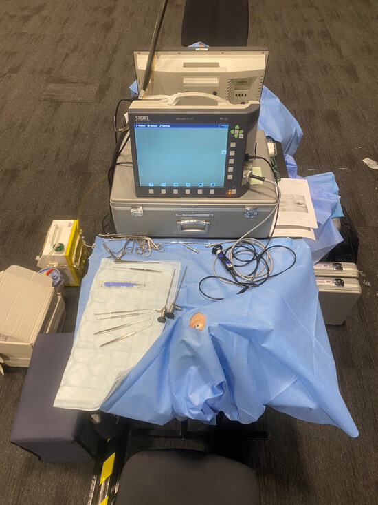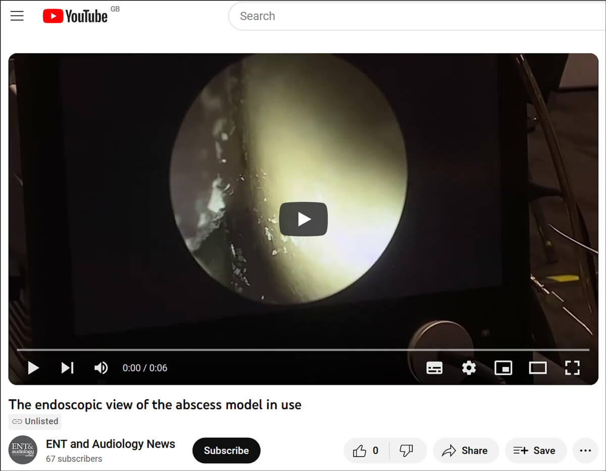 Click the image belowto view a short clip of the endoscopic view of the abscess model in use.