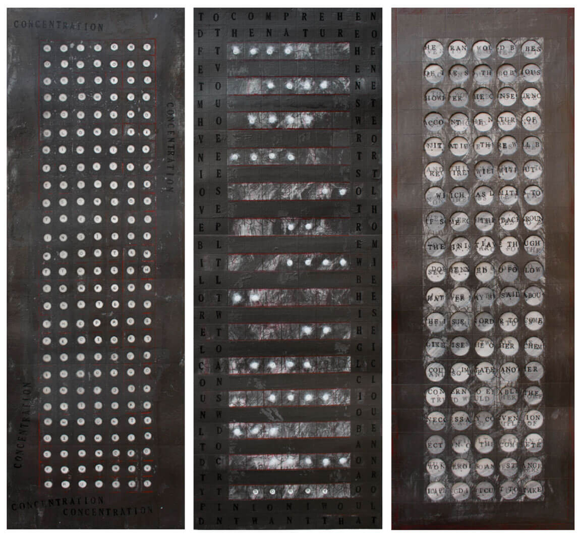 (Triptych) ‘Concentration’, ‘To Comprehend’ and ‘Layers of Opinion’. Framed size each: 76 x 31cm.
