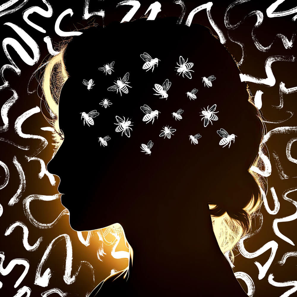 A child’s drawing, depicting his tinnitus as ringing bells.