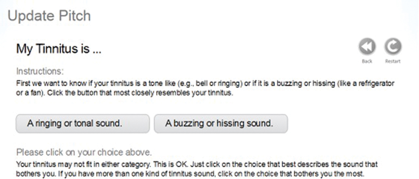Figure 1: User interface for tinnitus pitch finder protocol.