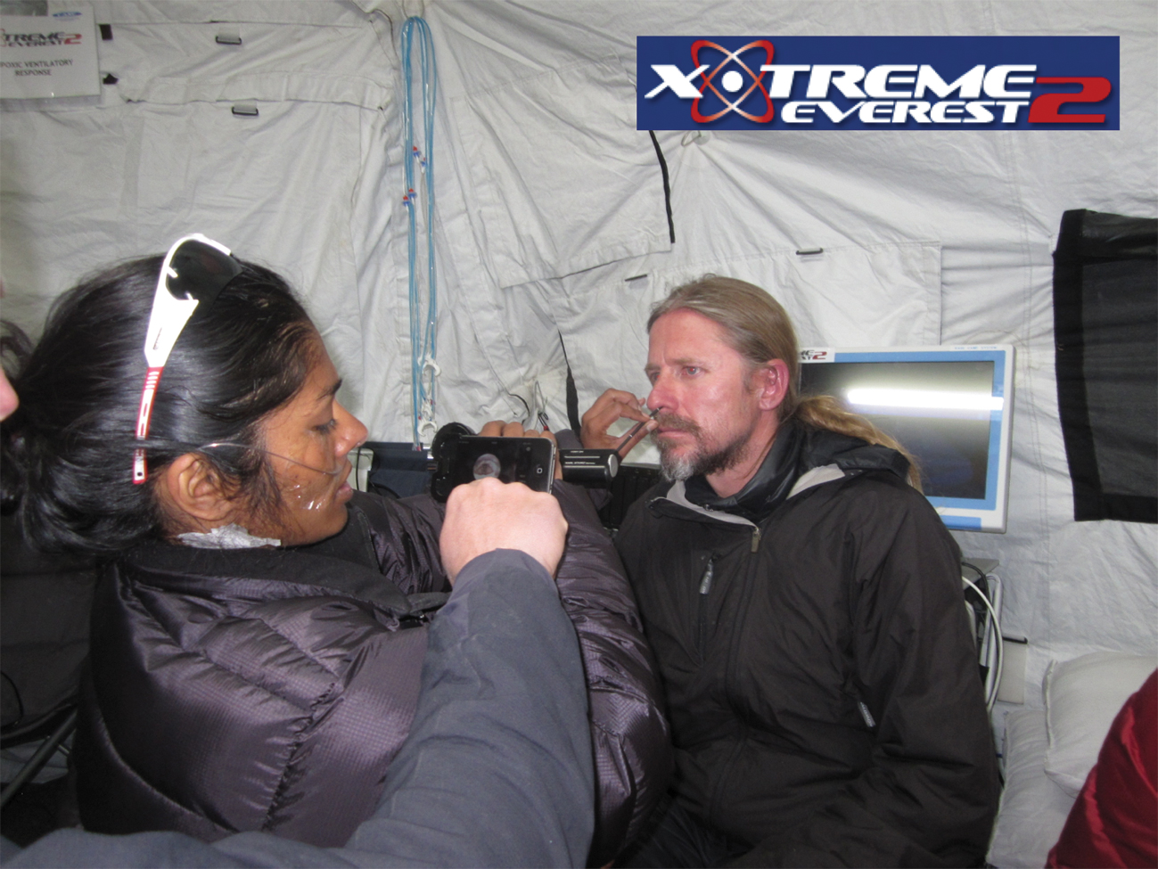 Figure 2b: Ms Seema Yalamanchili uses the e-i at Everest base camp for the ‘Xtreme Everest2’ team.