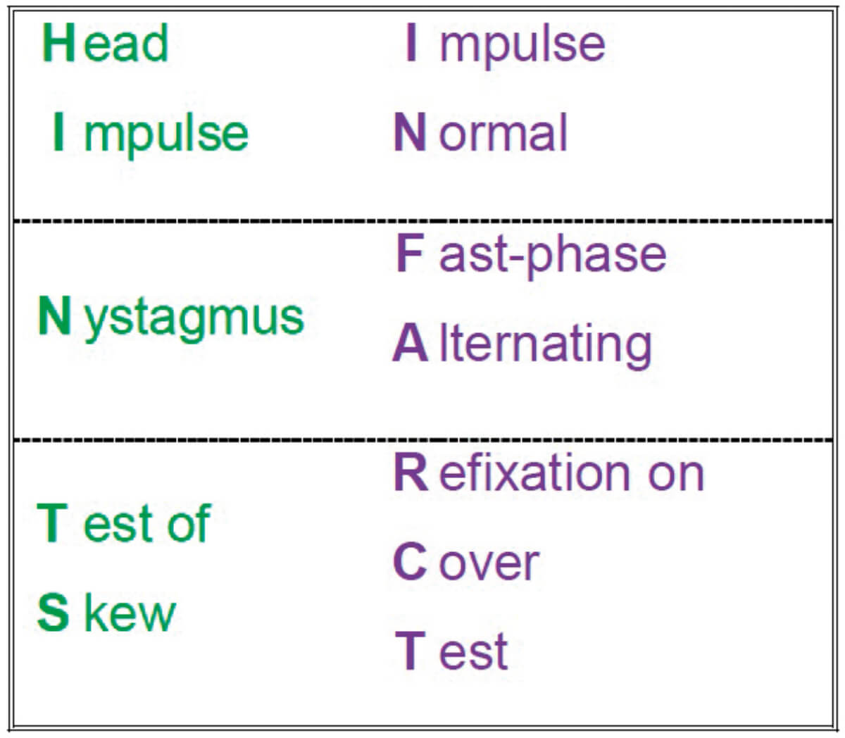 5. Newman-Toker DE, Curthoys IS, Halmagyi GM. Diagnosing Stroke in Acute Vertigo: The HINTS Family of Eye Movement Tests and the Future of the “eye ECG.” Semin Neurol 2015;35(5):506-21.