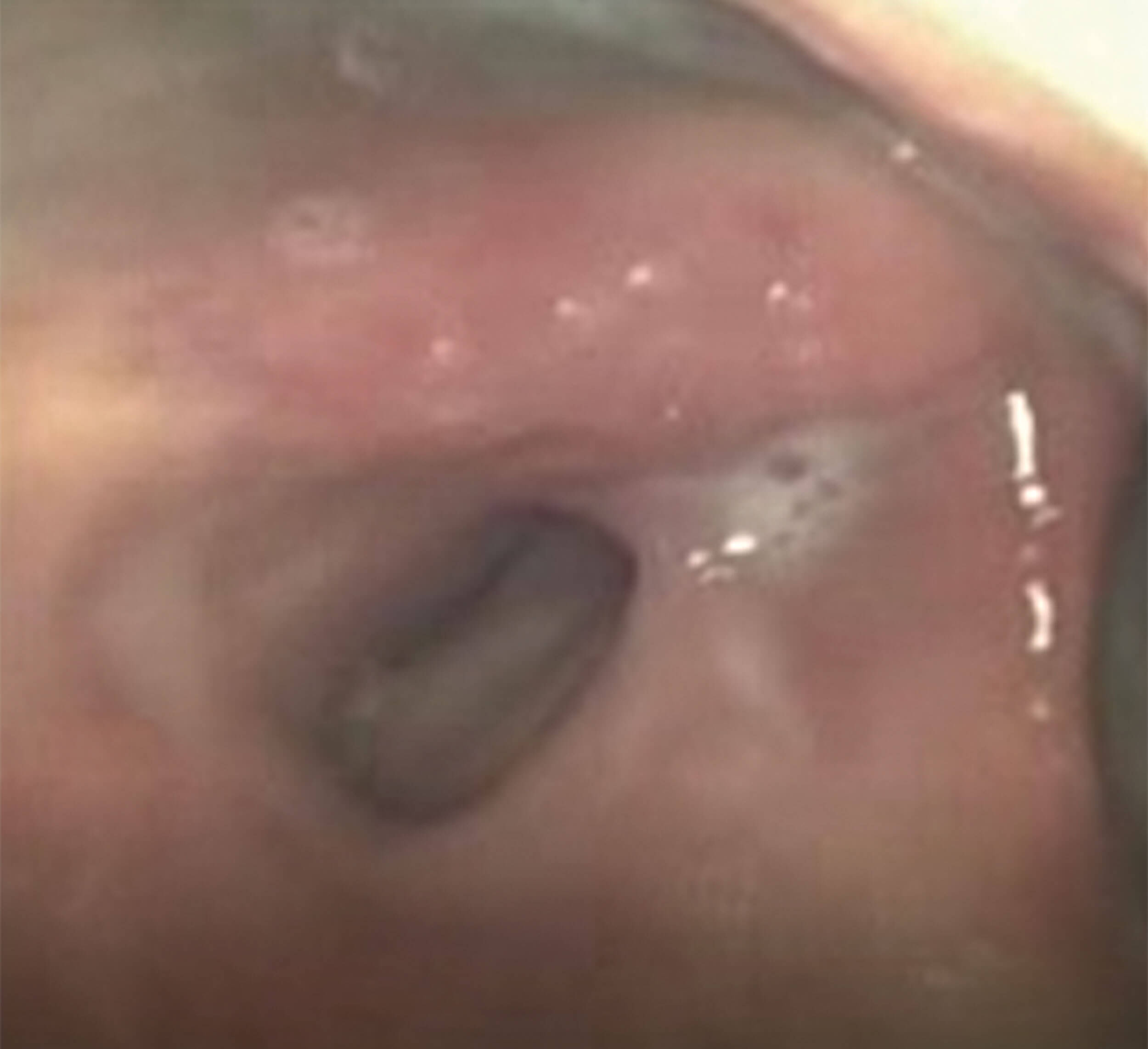 Figure 1. Image of pooled secretions entering posterior larynx via