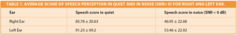 Sensorineural hearing loss and cochlear impairment in most of the veterans significantly decreased the perception of speech, especially speech in noise (Table 1). This is also related to degree of hearing loss, i.e. the more hearing loss, the less speech perception in noise.