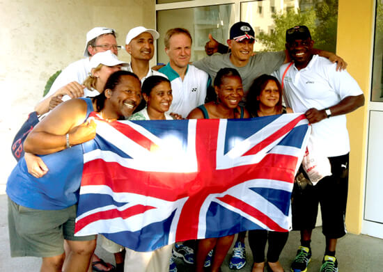 GB Athletics Team Manager, Brian, with some of the Great Britain Athletics supporters in Bulgaria.