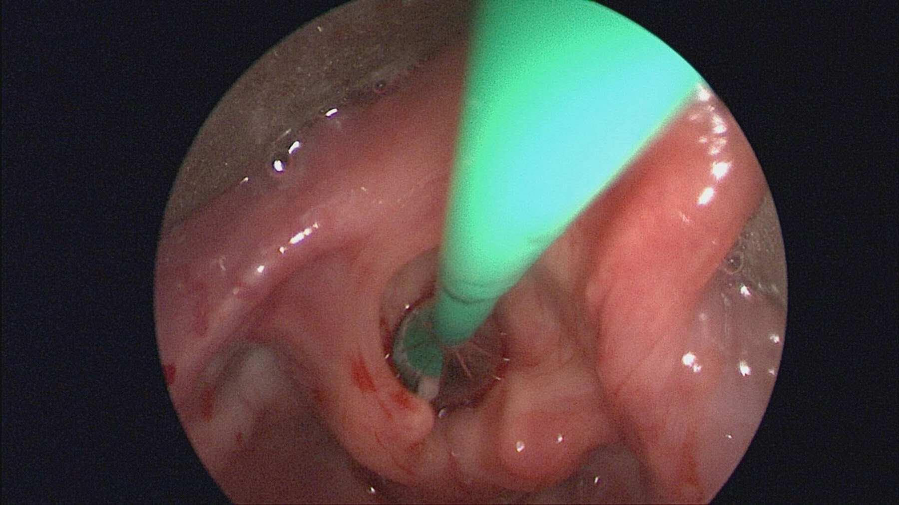 Figure 1. Endoscopic view of larynx with balloon catheter in situ.