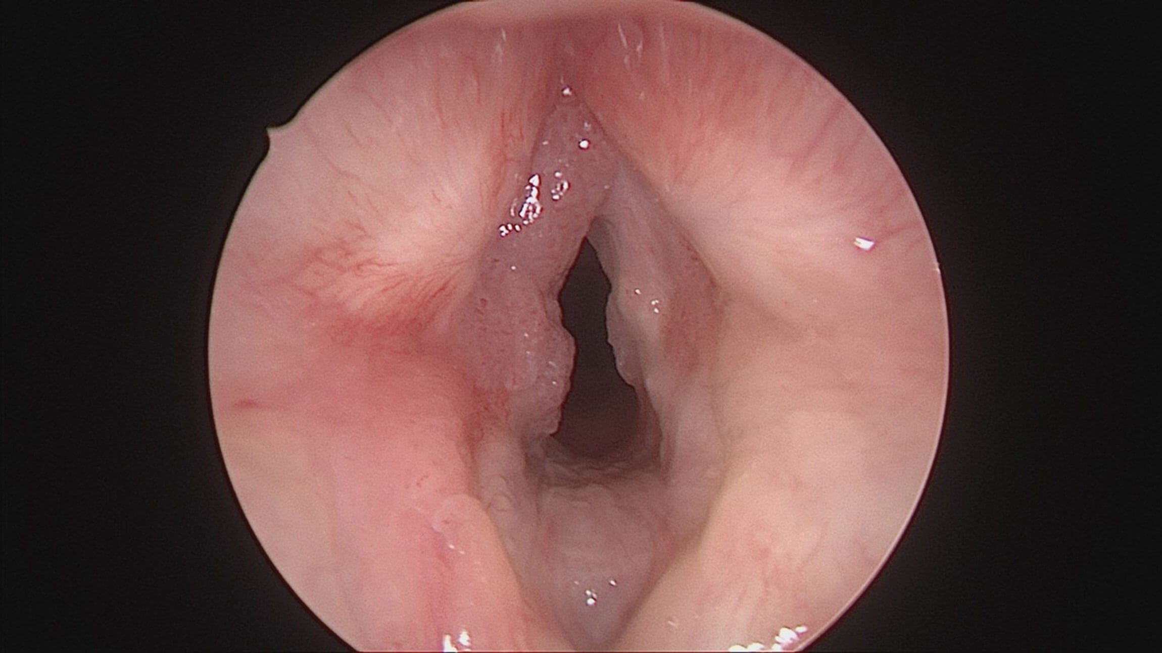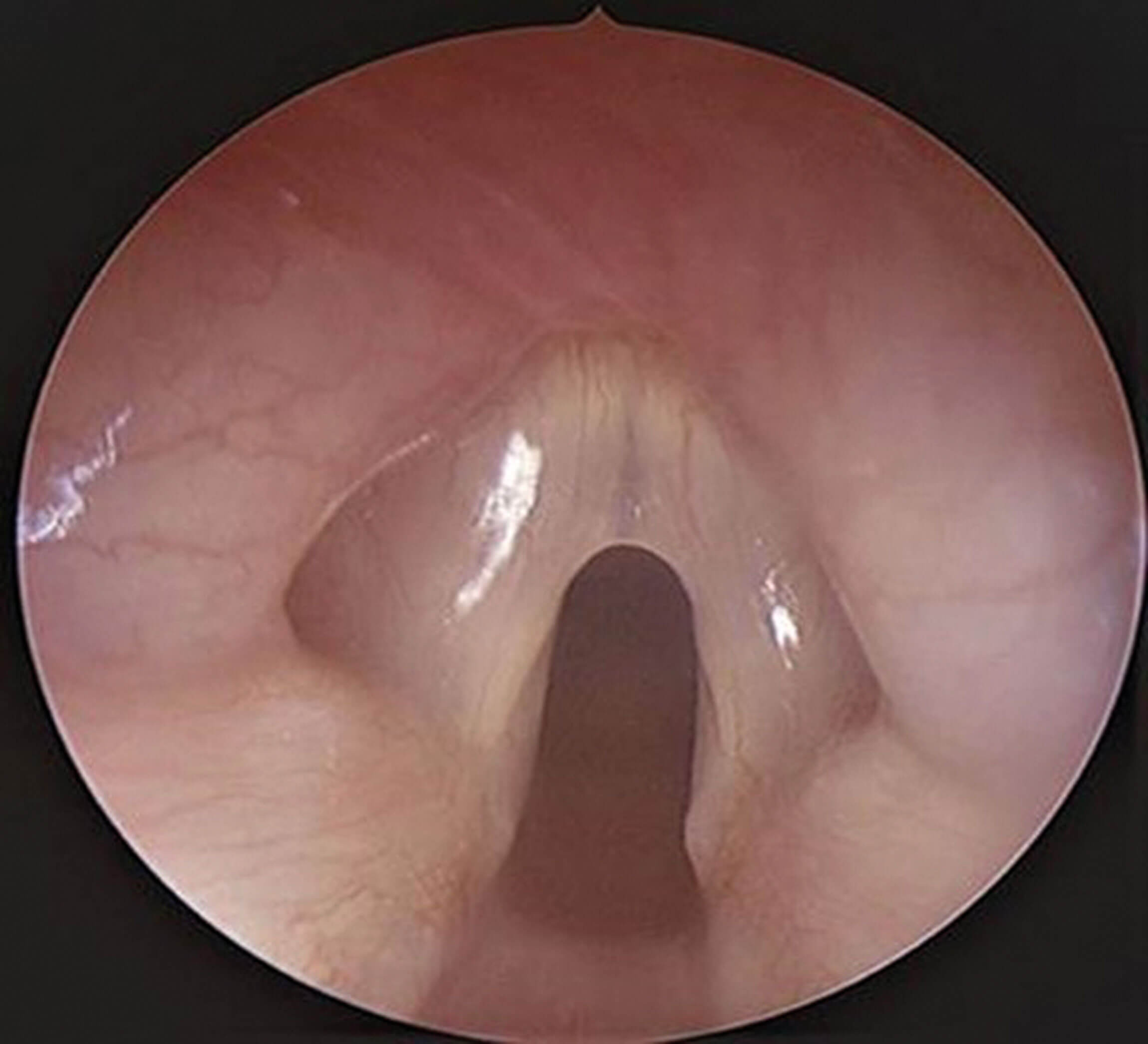 Figure 3. Endoscopic view of larynx showing a thin anterior glottic web.