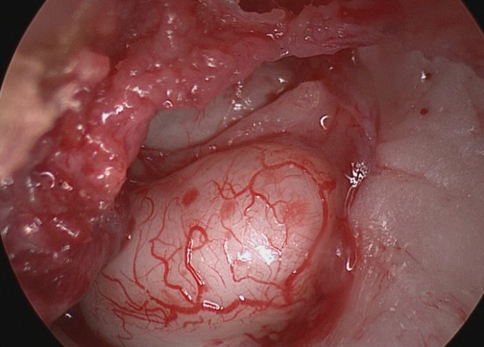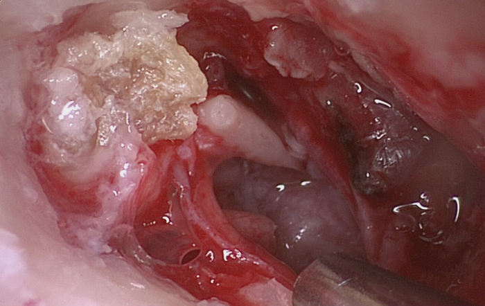 Figure 3 Endoscopic approach for cholesteatoma removal.