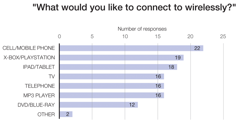 Figure 2. Responses to the question, ‘What would you like to connect to wirelessly?’ Multiple answers were possible.
