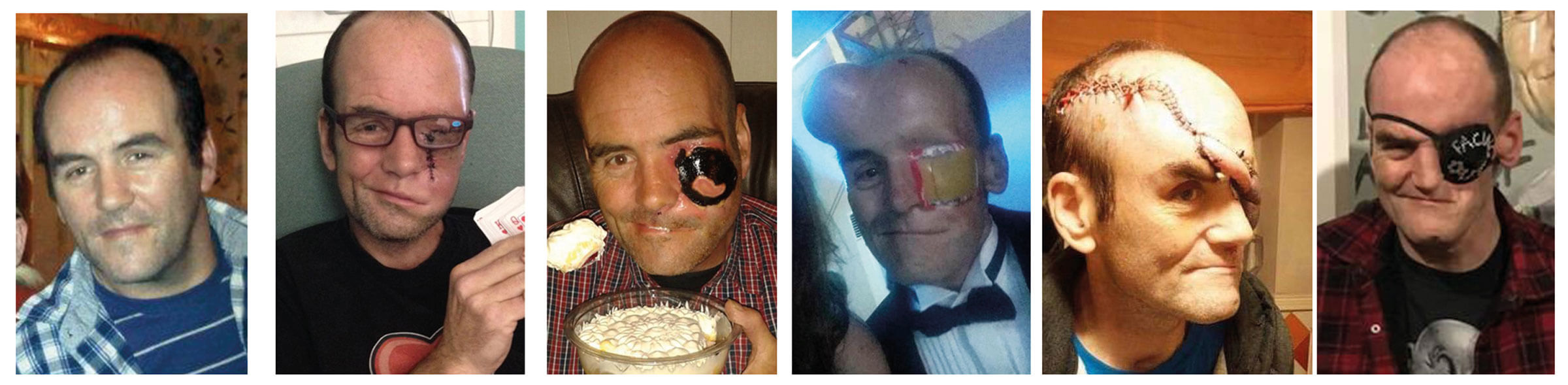 I was equally impressed by Bern. His warmth and humour aside, the fact that he had approached a stranger for a chat, in the face of the kind of traumatic experience that all too often triggers social avoidance, demonstrated a great strength of spirit. After this encounter we became friends on social media. There, Bern posted images of the alterations to his face, and poems that told his story. It was following Bern’s long and involved process of treatment and reconstructive surgery via his very open and honest social media posts that inspired me to think about facial disfigurement due to head and neck cancers and consider developing a project like Facing Out.