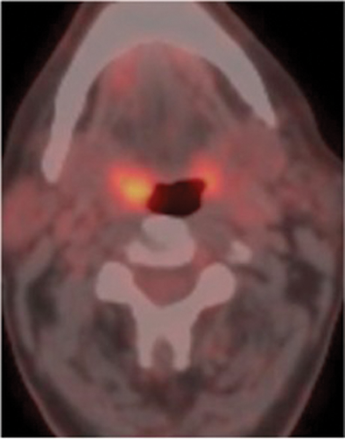 Depending on the radiotracer used, different aspects of tissue metabolism can be evaluated, including relative hypoxia and proliferative capacity of tissue. That said, the overwhelming majority of clinical studies use 2-fluoro-2-deoxy-D-glucose (FDG), which reflects glucose metabolism - cancer cells in general have higher glucose uptake compared with normal cells. FDG PET- CT has an established role in the assessment of patients with head and neck squamous cell carcinoma (H&NSCC).