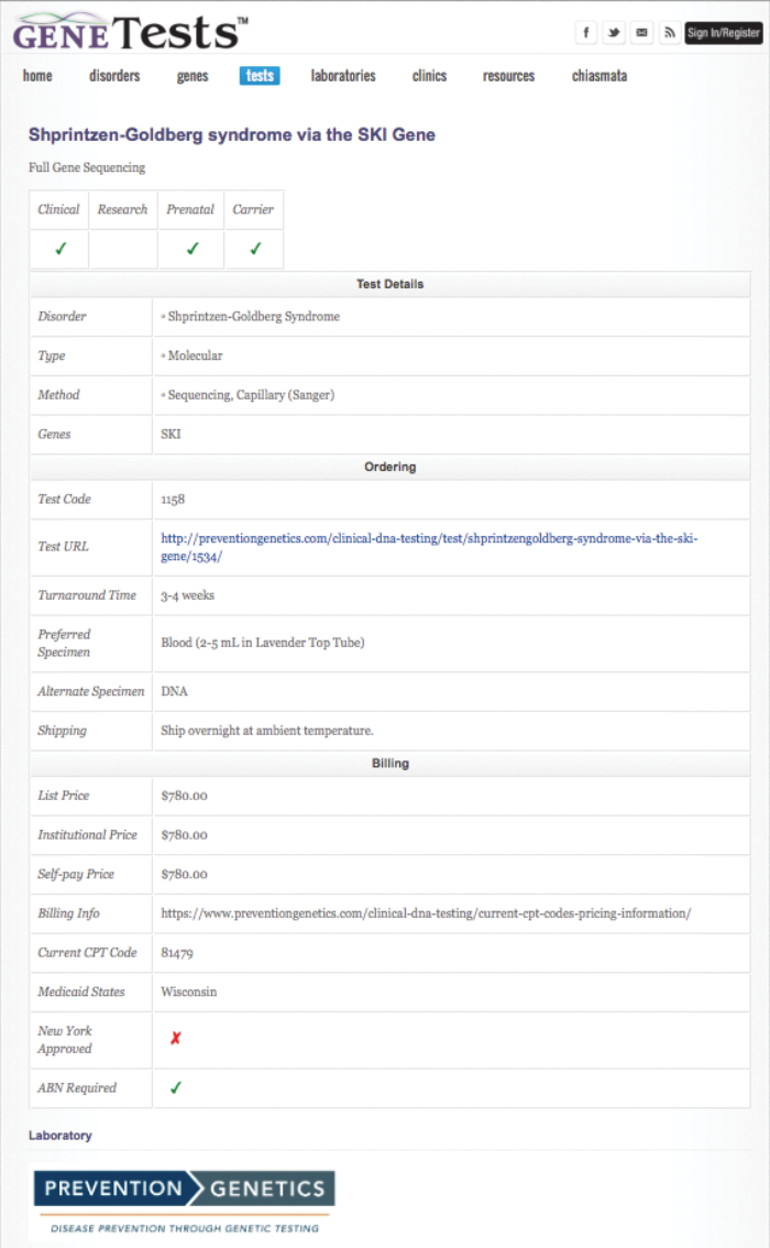 Figure 1: A page from GeneTests™ showing information provided from this open source web site.