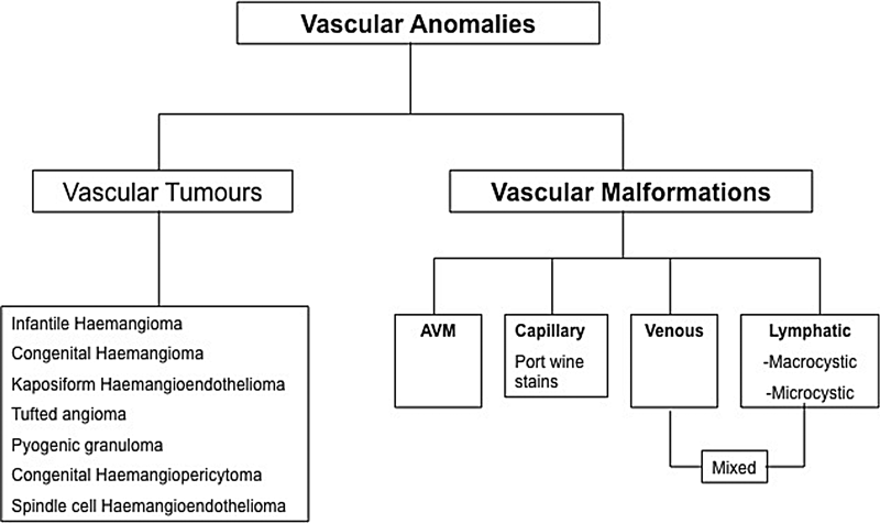 Figure 1: The modified Mulliken classification of vascular anomalies. (AVM = arteriovenous malformation).