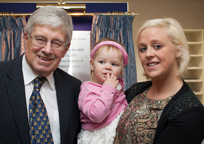Professor Richard Ramsden with Jessica, the 1000th Child implanted in Manchester and her mother, Vicky.