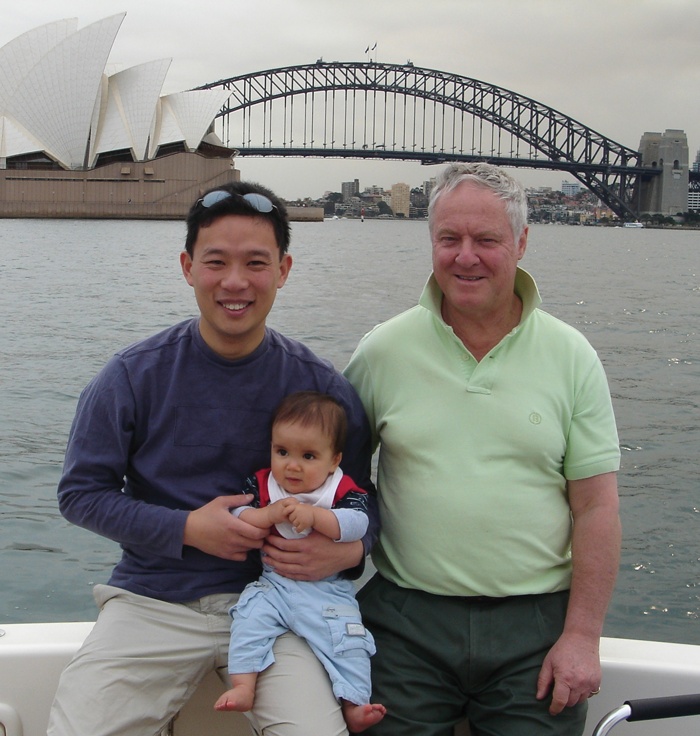 on Prof Gibson’s boat, ‘Mad Wax’ on Sydney Harbour in 2005.