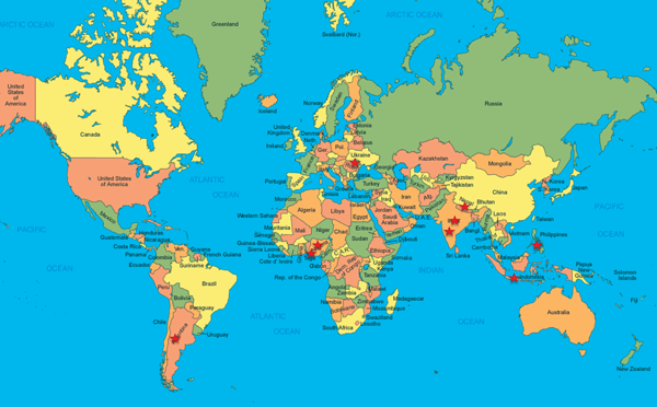 Figure 6: Location of the nine International Observership recipients.