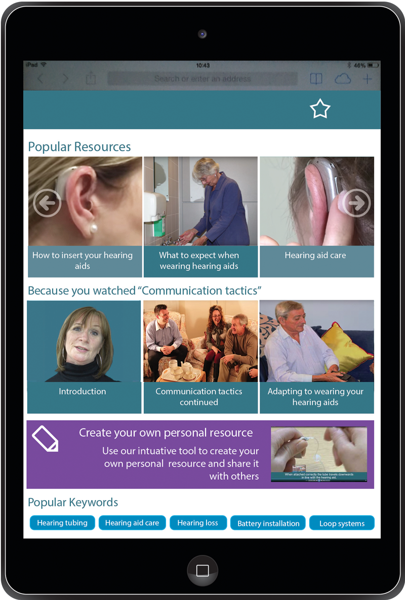 Working collaboratively with audiologists and hearing aid users to develop the content [2], we have released a freely available online educational programme for hearing aid users (just google ‘C2Hear Online Youtube’ to take a look). C2Hear comprises 10 interactive multimedia videos (termed ‘reusable learning objects’, or RLOs) covering a range of practical and psychosocial issues on hearing aids and communication, plus user testimonials to bring patient experience to the fore. Although C2Hear was originally developed for a DVD platform when the work started in 2011, C2Hear Online can now be accessed through mobile technologies.