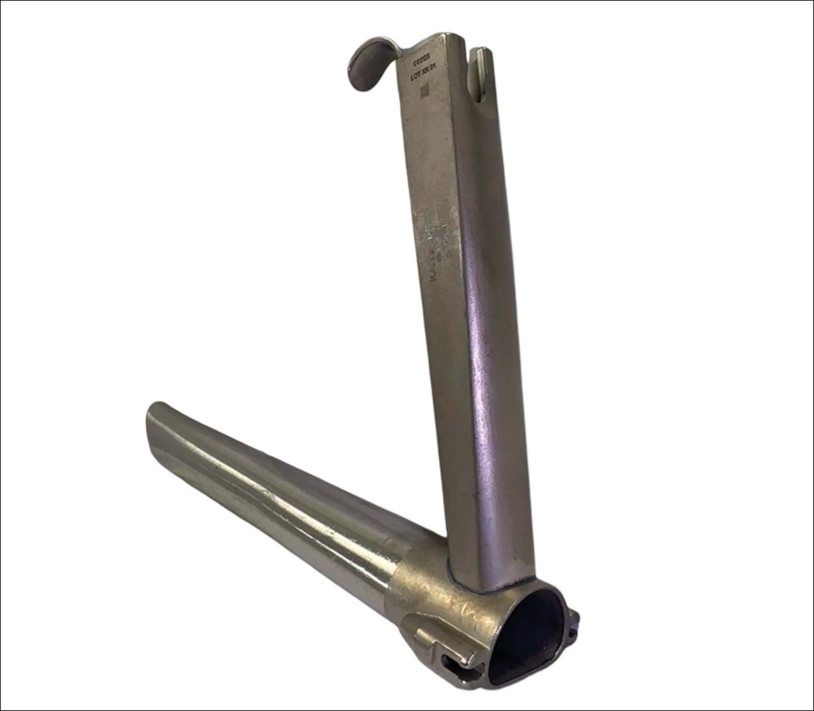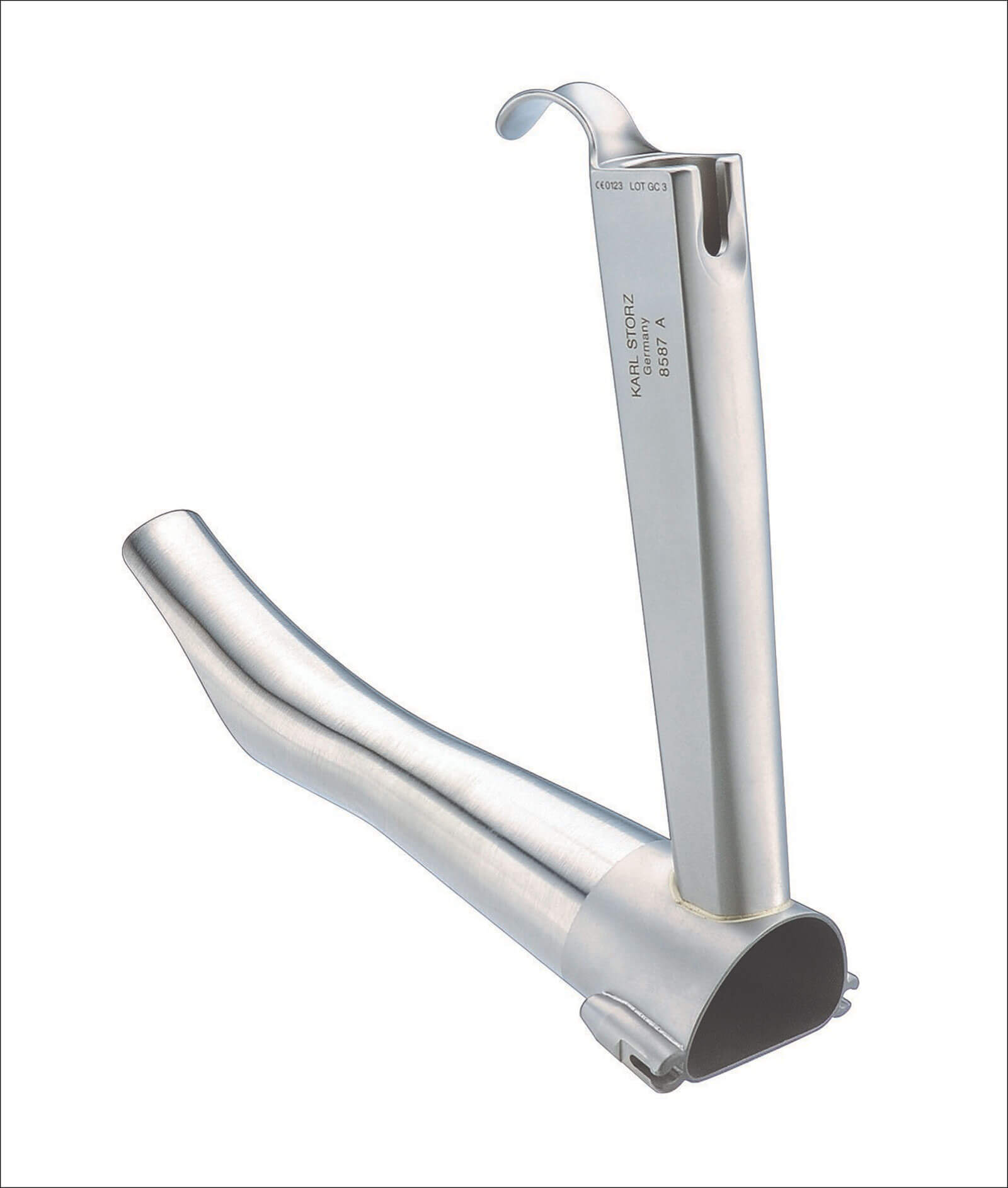 - Gentle ski slope curve, with its tip sitting in the vallecula; difficult to use if there is limited mouth opening.