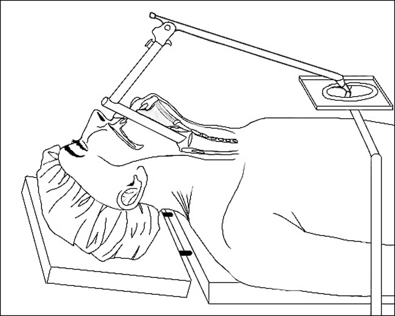 A sketch by Olivia Kenyon showing the position of the patient during the microlaryngoscopy.