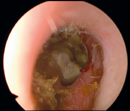 Figure 1. The right ear of a patient who has undergone canal wall down mastoidectomy,