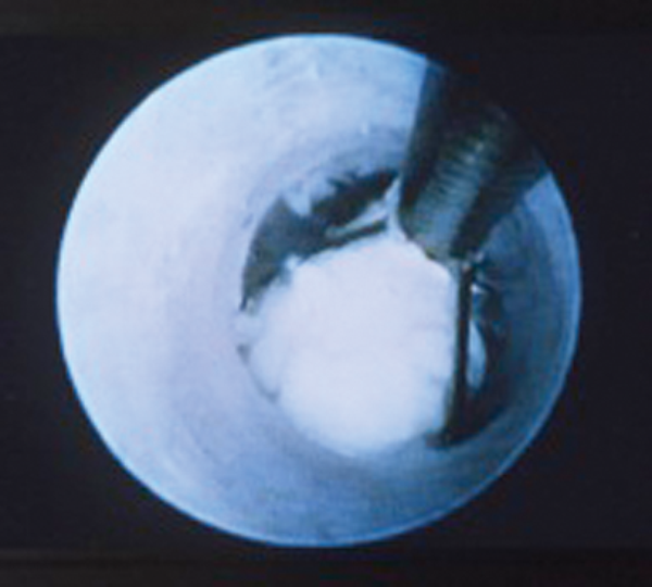 Figure 3: (B) The insertion of a Dormia basket (closed).