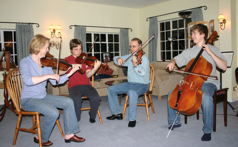 Chris with wife and sons Tom and Alex in family quartet.