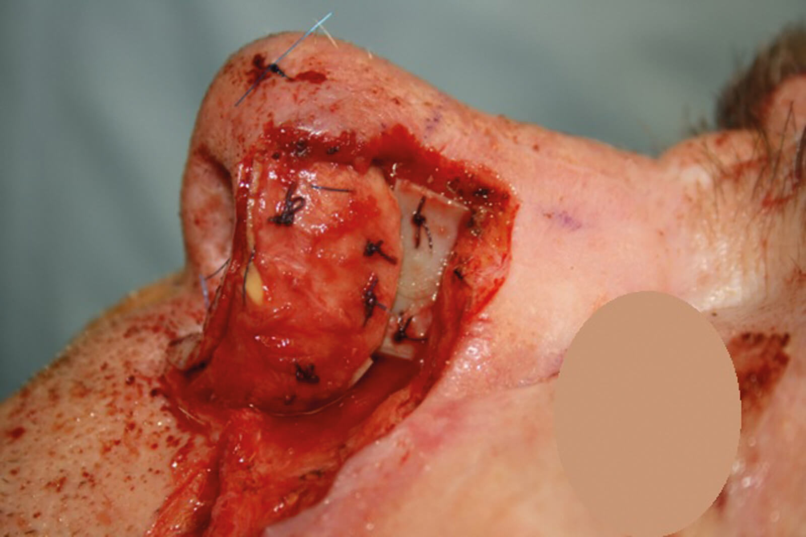 The structural support of the nose is mainly provided by the bone and the lateral cartilages as well as connective tissues. Cartilage grafts are the main tissues used to provide support for the reconstructed nose and they are often used both as anatomic and non-anatomic grafts when repairing the nasal sidewall and the ala (Figure 2).