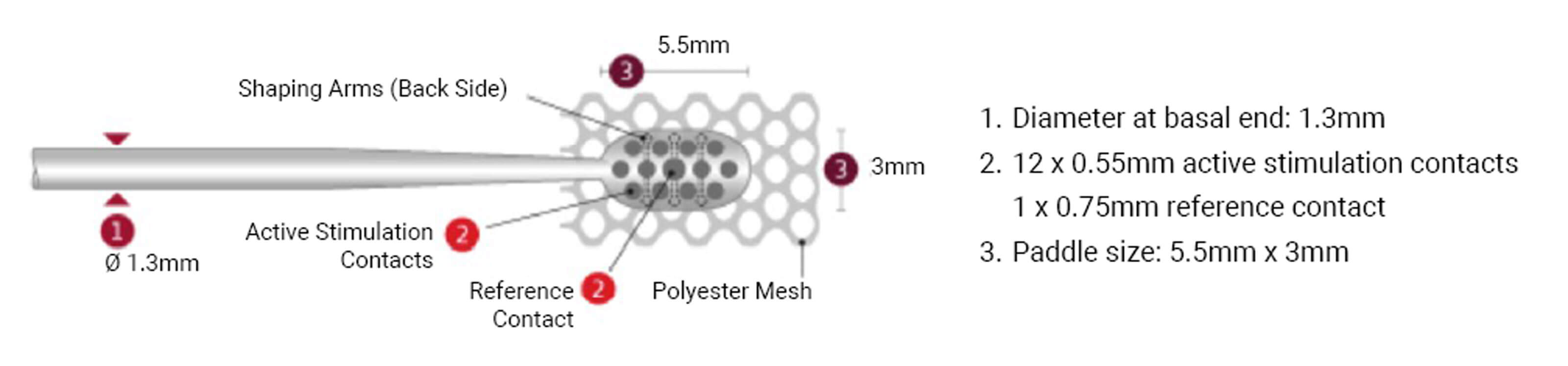 Figure 1. Dimensions of electrode paddle manufactured by MED-EL, Austria.
