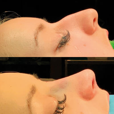 - Naturally shaped dorsum with over-projection (tension nose), midline septum.