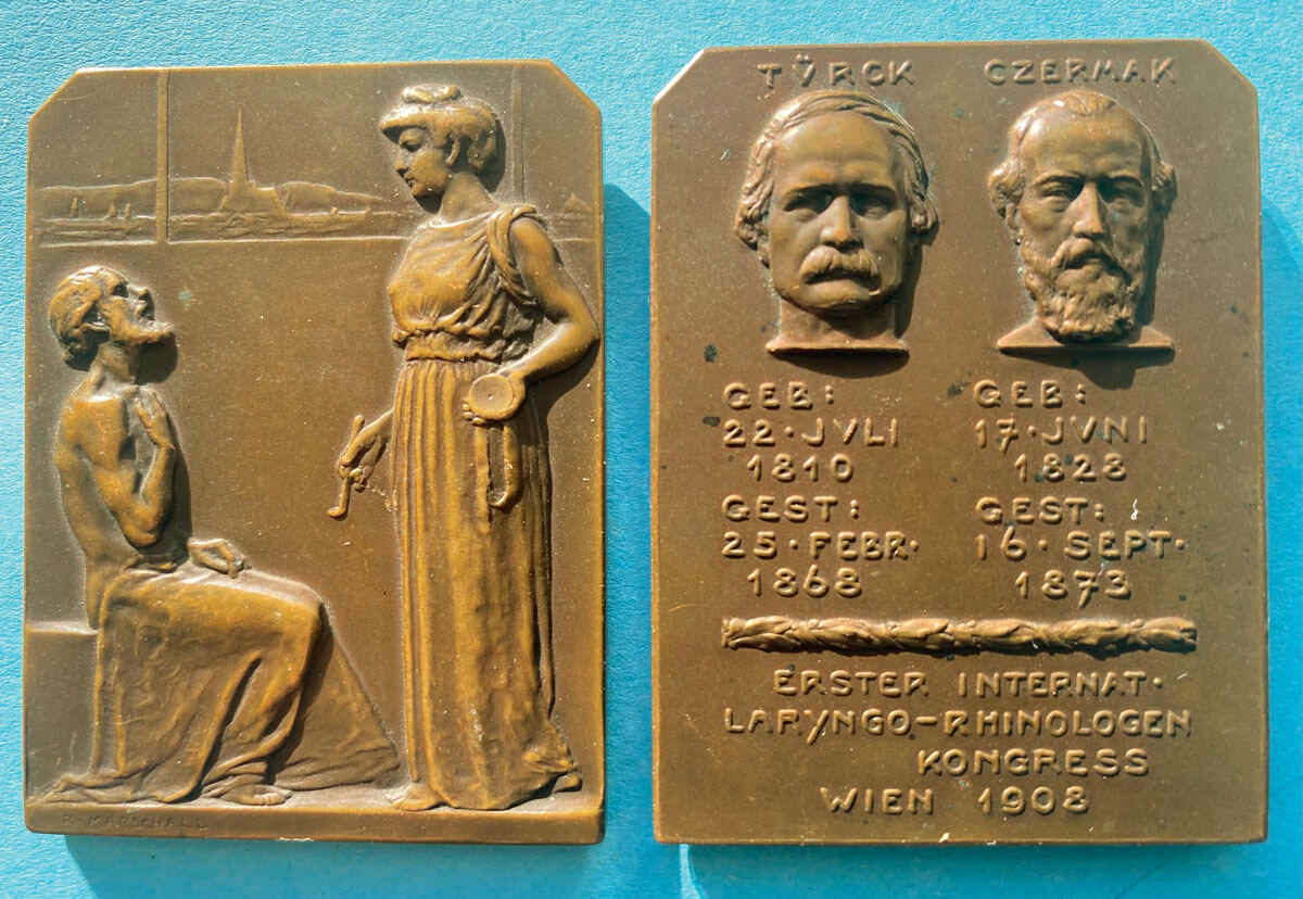 The reverse shows a full-face bas-relief of Türck and Czermak (with their dates).