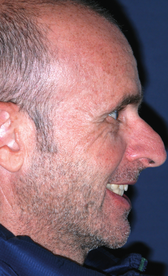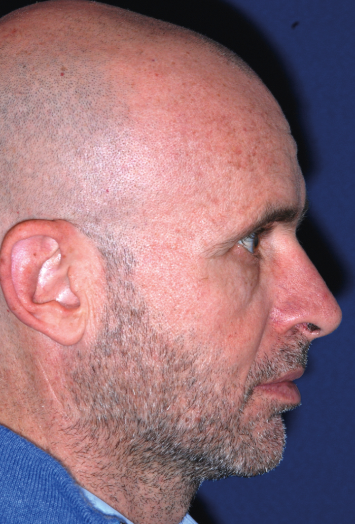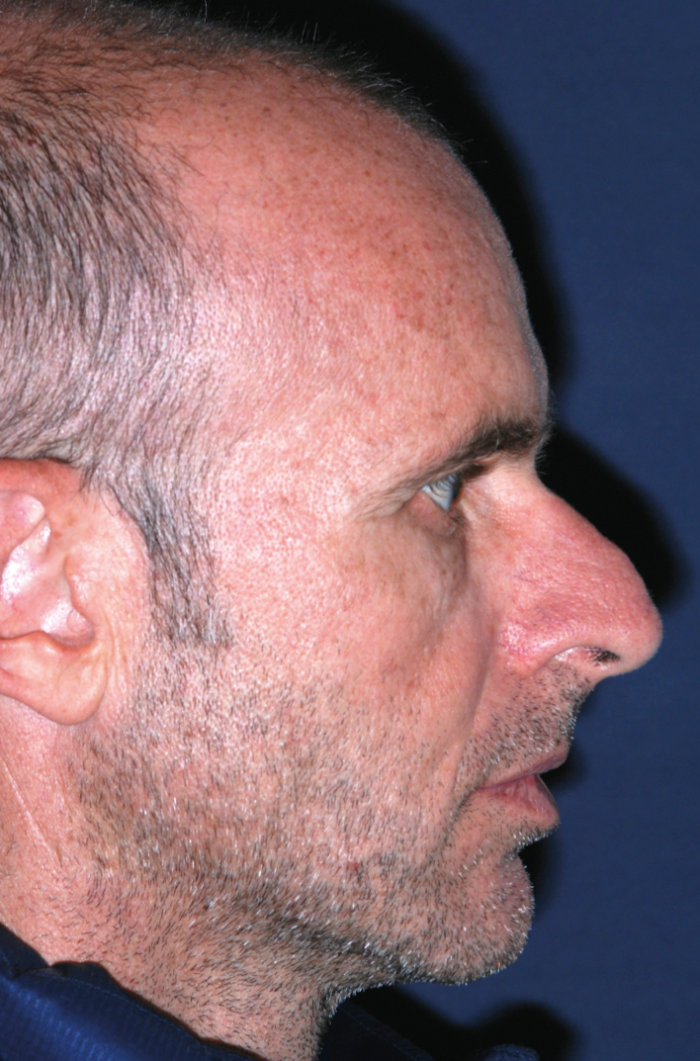 Side view. Preoperative (left) and postoperative (right) show the aesthetical repositioning of the critical contour