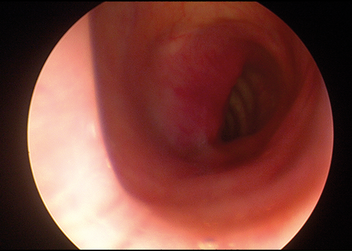 Figure 4. An endoscopic view of intraluminal invasion by a papillary thyroid cancer recurrence.