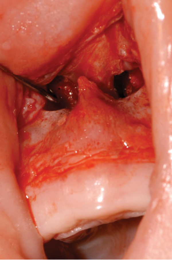 - A mucoperiosteal flap is raised to expose the bony stenosis bilaterally (Figure 3).