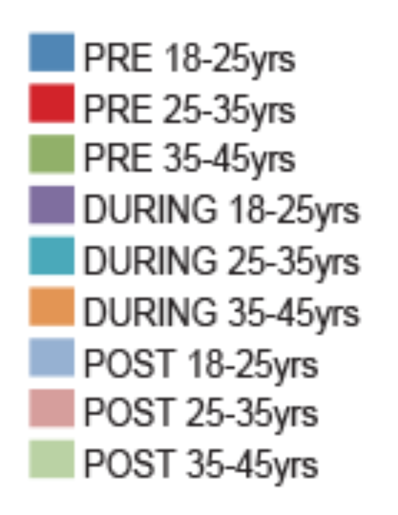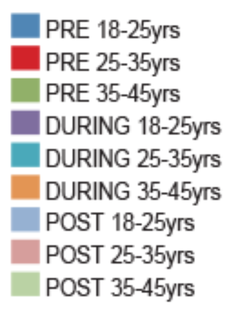 1. Changes in hearing thresholds at each frequency pre, during and post menstrual cycle for the right ear.