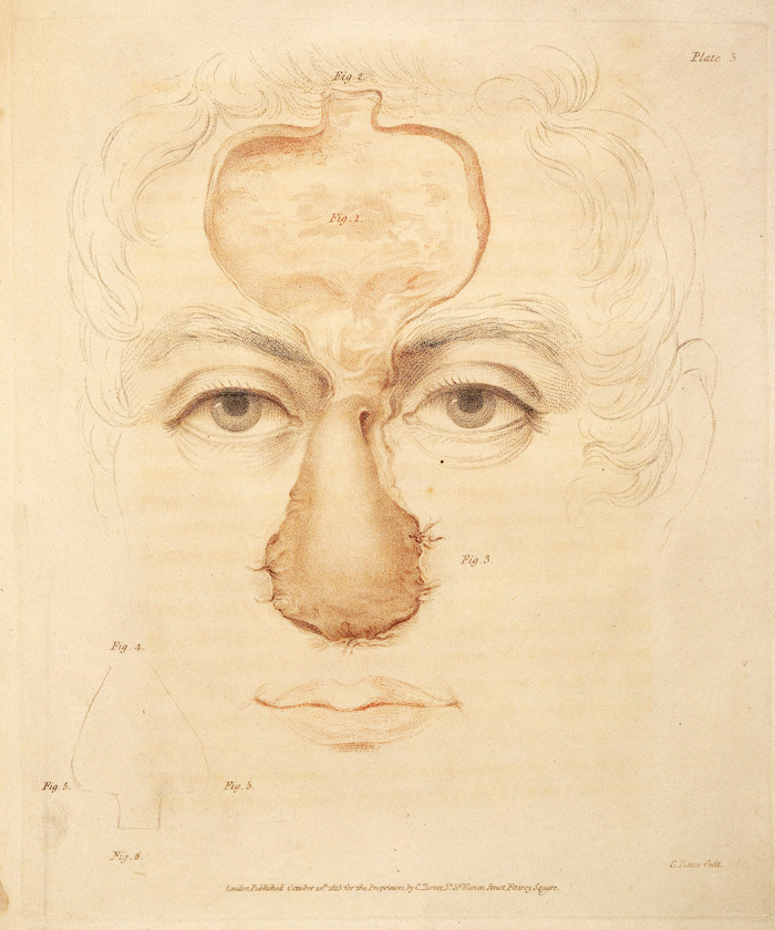 4. Carpue JC. An Account of Two Successful Operations for Restoring a Lost Nose from the Integuments of the Forehead. In cases of two officers of His Majesty’s army: to which are prefixed, historical and physiological remarks on the nasal operation; including descriptions of the Indian and Italian methods. London; Longman, Hurst, Rees, Orme and Brown; 1816.