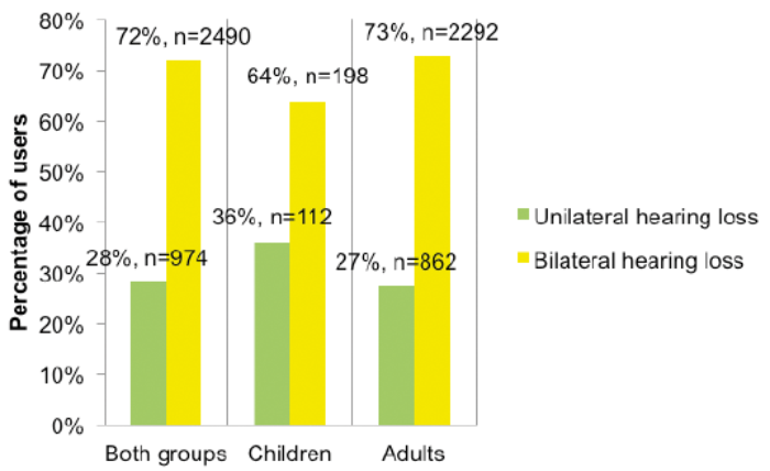 Figure 1. Number (%) of BCHI users with unilateral and bilateral hearing loss