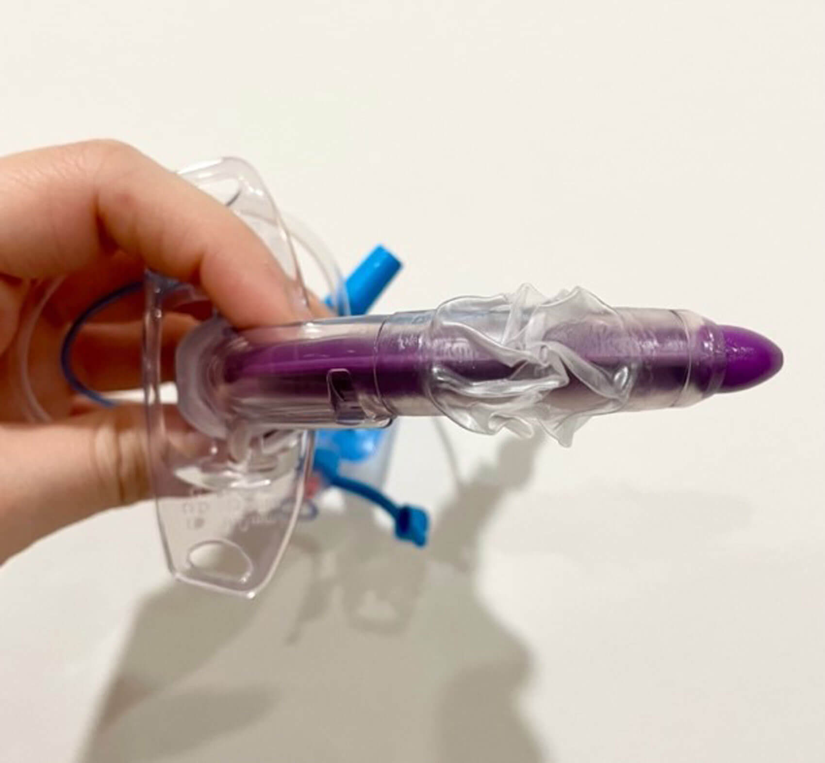 Figure 4. Demonstrating endotracheal intubation through an enclosed laryngoscope.