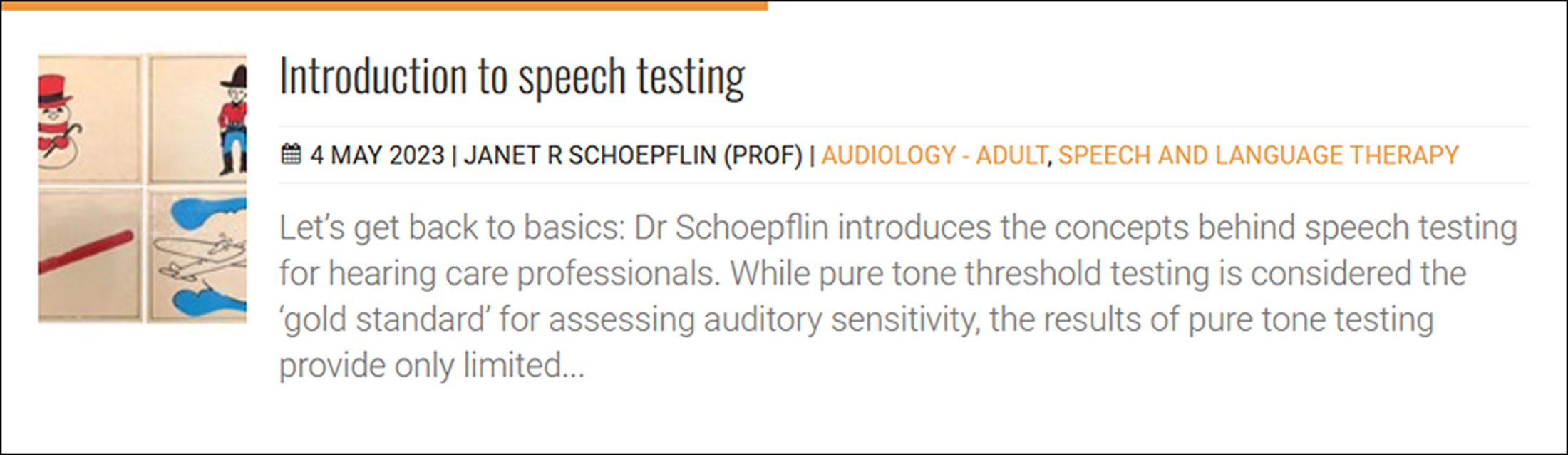 Why change a classic? Because of new knowledge and improved technology, of course! Drs Hewitt and Madell present an update to Daniel Ling’s classic speech test.