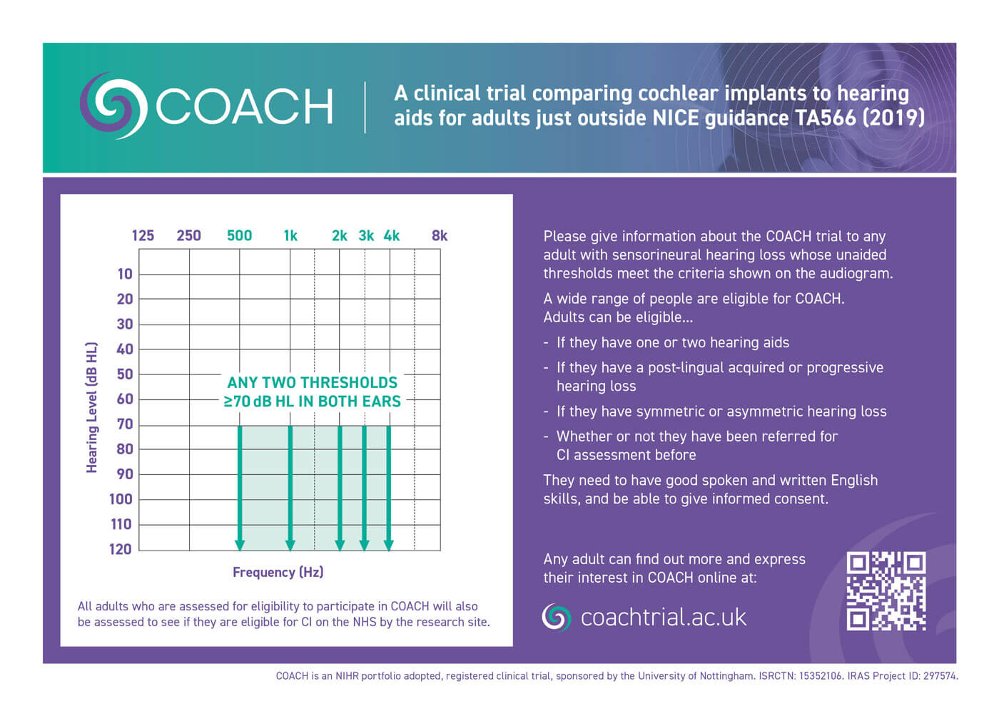 COACH - an acronym for COmpAring Cochlear implants to Hearing aids for adults - randomly allocates eligible participants to the CI or HA groups and follows them for nine months.