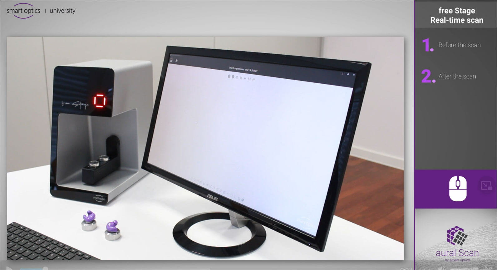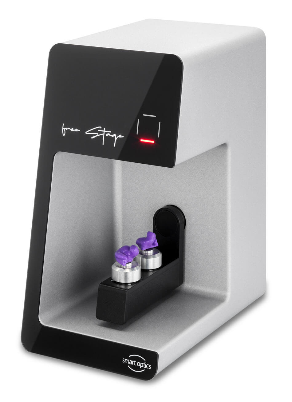 Britta Welz, Sales Manager Audiology at smart optics, adds “The free Stage allows you to scan open without a lid, which saves valuable time. The slim, modern design fits in every workspace. In addition, the free Stage is built in a solid "Made in Germany" quality, supplied with a 3-year warranty. The free choice of lab due to open scan files allows you to produce customized hearing and audio products with an accuracy of ≤ 9µm. Last but not least, smart optics offers after service support, completely free of charge, no fees or hidden costs.”