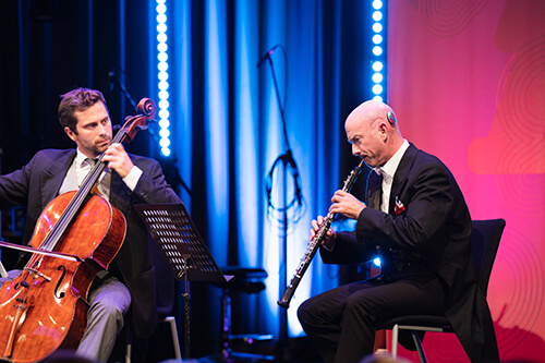 Russell Tyler is the principal oboist with the Orquestra do Norte in Portugal. In 2018 he was diagnosed with superior semicircular canal dehiscence in his left ear and had three surgeries to try to rectify the issue. After one of the surgeries, he lost all hearing in his left ear. In this interview he shares his experiences as a musician and his journey with a cochlear implant (CI). Russell performed with an ensemble from the Vienna Philharmonic (below right) as part of the MED-EL Sound Sensation music festival. You can see his performance and interviews online.