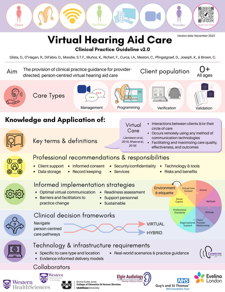 Scholarship@Western has published v2.0 of a clinical practice guideline (CPG) on Virtual Hearing Aid Care. Aimed at hearing healthcare providers working remotely, it covers the management processes, technology and infrastructure required to provide virtual hearing aid fitting and services. It offers sustainable models of care across all ages and takes a client-centred approach.