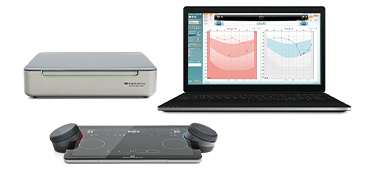 Equinox Evo is a PC-based clinical audiometer offering all the tools you need to test patients of all ages and clinical needs. It contains advanced tests, such as ACT, an integrated paediatric module and free field testing. The audiometer keyboard combines an intuitive touch interface with familiar dials and buttons. It can be used wirelessly to be close to your patients.