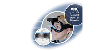 NysStar II is designed for reliable balance testing, with dual high-resolution cameras (which offer 200 images per second), it’s comfortable, lightweight and robust. Delivered with a cover for vision denied, it has in-built fixation LED (for ocular fixation index) with options for gyroscopes and accelerometer for the active head rotation test. Ideal combination for rotational chairs and caloric testers.